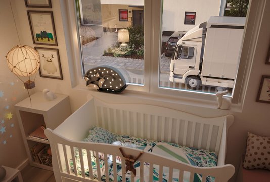 Die wenigstens Bauherren denken bei der Grundrissgestaltung und Einrichtung ihres Hauses zuerst an den akustischen Wohnkomfort. Doch gerade bei der Raumverteilung gilt es auch daran zu denken, in welchem Bereich des Hauses man sich mehr Ruhe wünscht, und in welchem Bereich eine gewisse Geräuschkulisse weniger stört. So sollten die Schlafzimmer im Idealfall nicht an der Seite der Straße sein. Auch ist es vielleicht weniger sinnvoll, das Kinderzimmer direkt am Wohnzimmer, der Küche oder den Hauswirtschaftsraum angrenzen zu lassen.